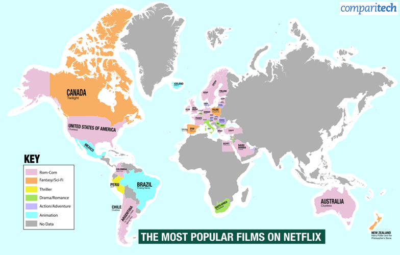 Series preferences show similar diversity. Although drama is a global staple, countries like Chile and Norway prefer comedy.