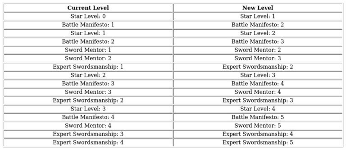 Swordsmanship training: increases all troops’ attack by [5% / 10% / 15% / 20% / 25%].