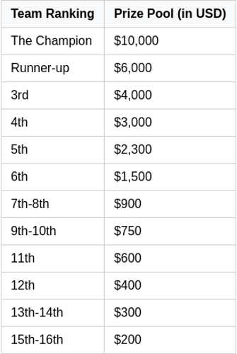 - 6th place: $2,000